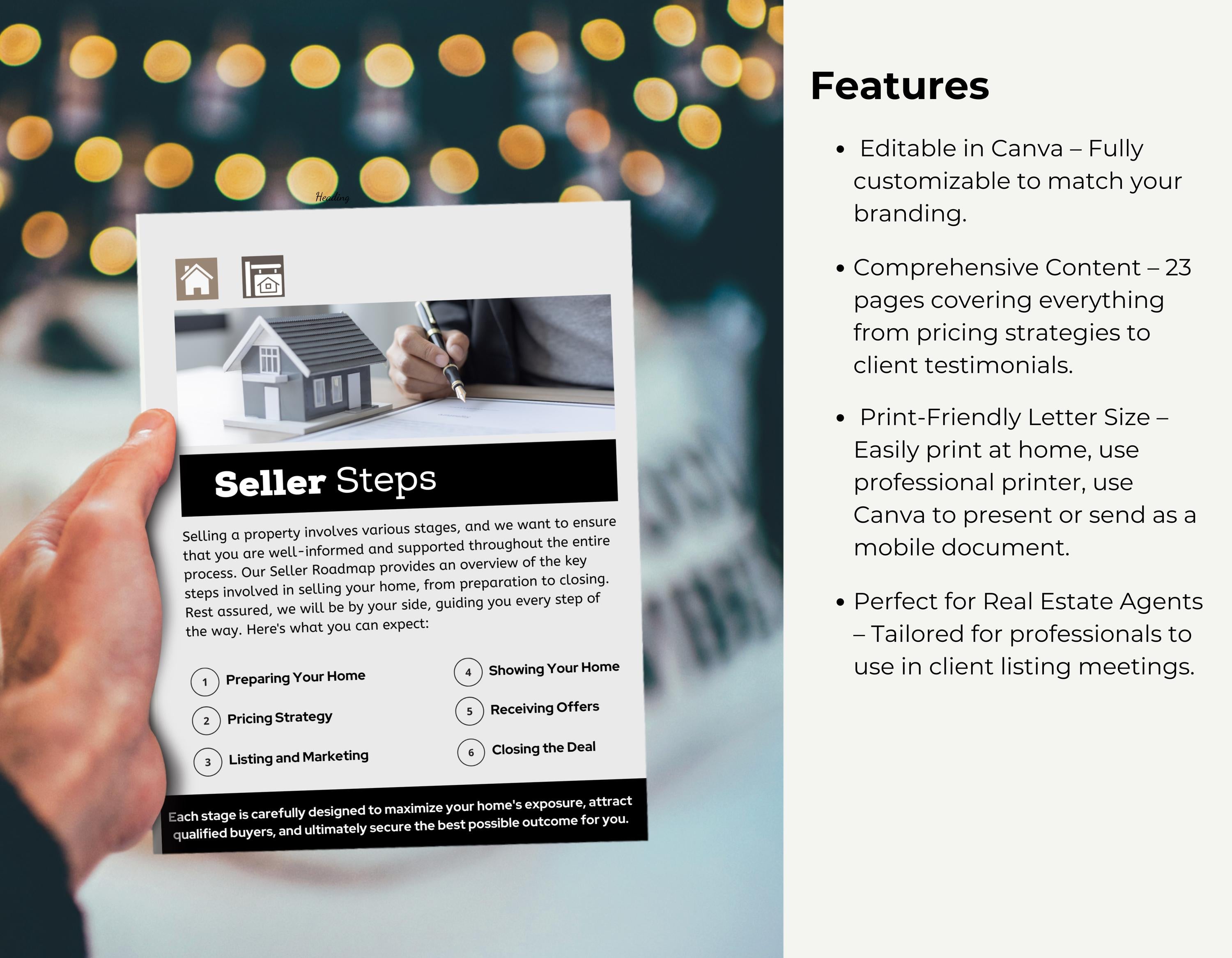 Real Estate Agent Presentation Template | Editable Canva Marketing Plan & Seller Packet